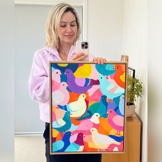 Sold out Sold outPigeon Party Framed Original ArtworkRegular price $899.00 AUDRegular priceUnit price per-