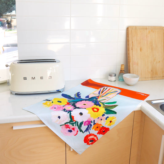 Add colour to your kitchen with my range of artist-designed tea towels! Each one features my original artwork and is professionally printed on high-quality 100% cotton flour sack fabric. These tea towels are soft, absorbent, and generously sized, making them practical and giftable. Designed in Australia and made in small batches, they’re perfect for dopamine-decor homes and anyone who loves functional art.