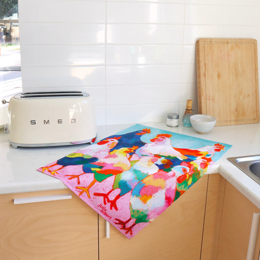 Funky Chickens Tea Towel