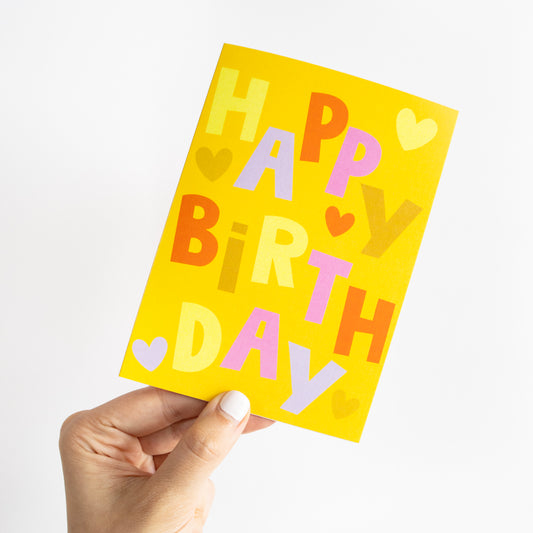 Funky Yellow Happy Birthday Greeting Card
