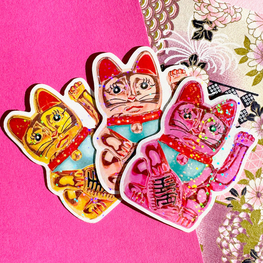 Maneki-Neko Glitter Sticker (Hot Pink)Regular price $5.00 USDRegular priceUnit price per-