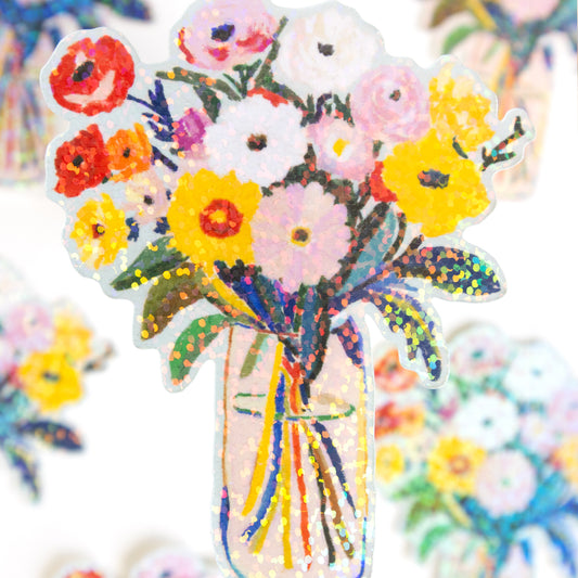Sunday Morning Flower Bouquet Vinyl Glitter Sticker