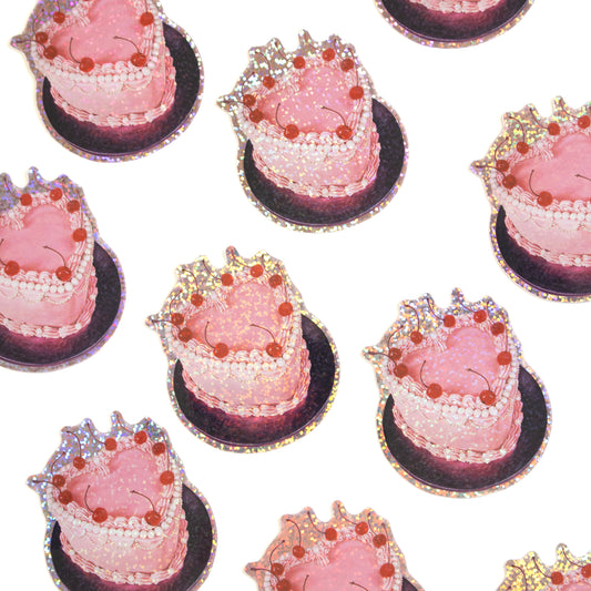 Glittery Pink Cake Vinyl Sticker