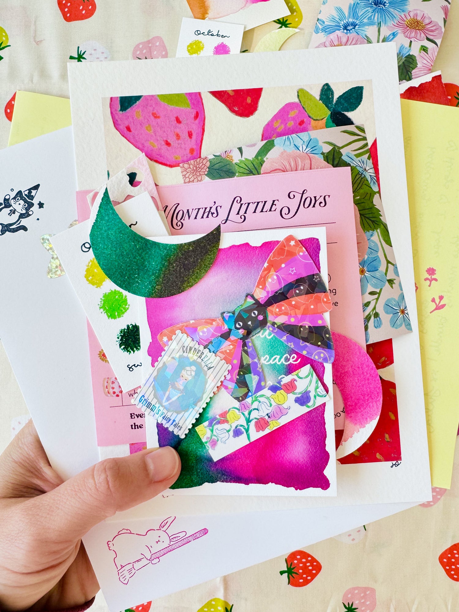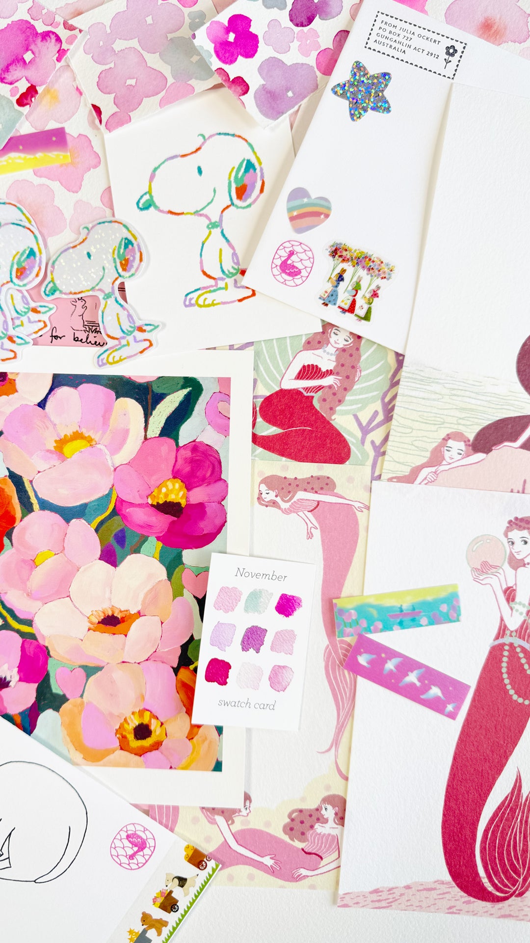 Each month, snail mail is sent from my studio in Australia all over the world. I curate a collection of sweet arty things, in the hope it inspires the recipient.