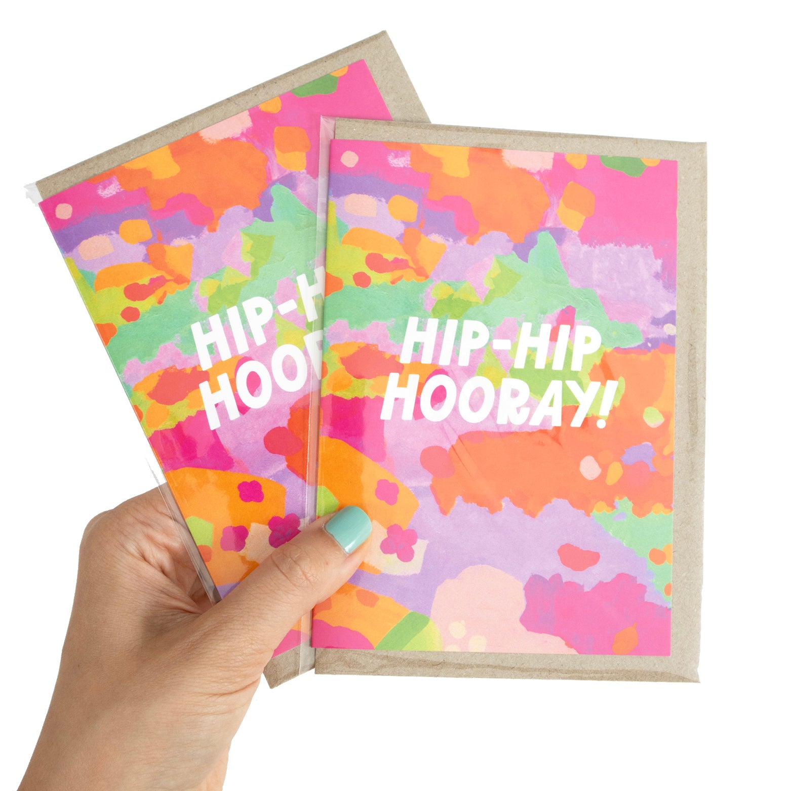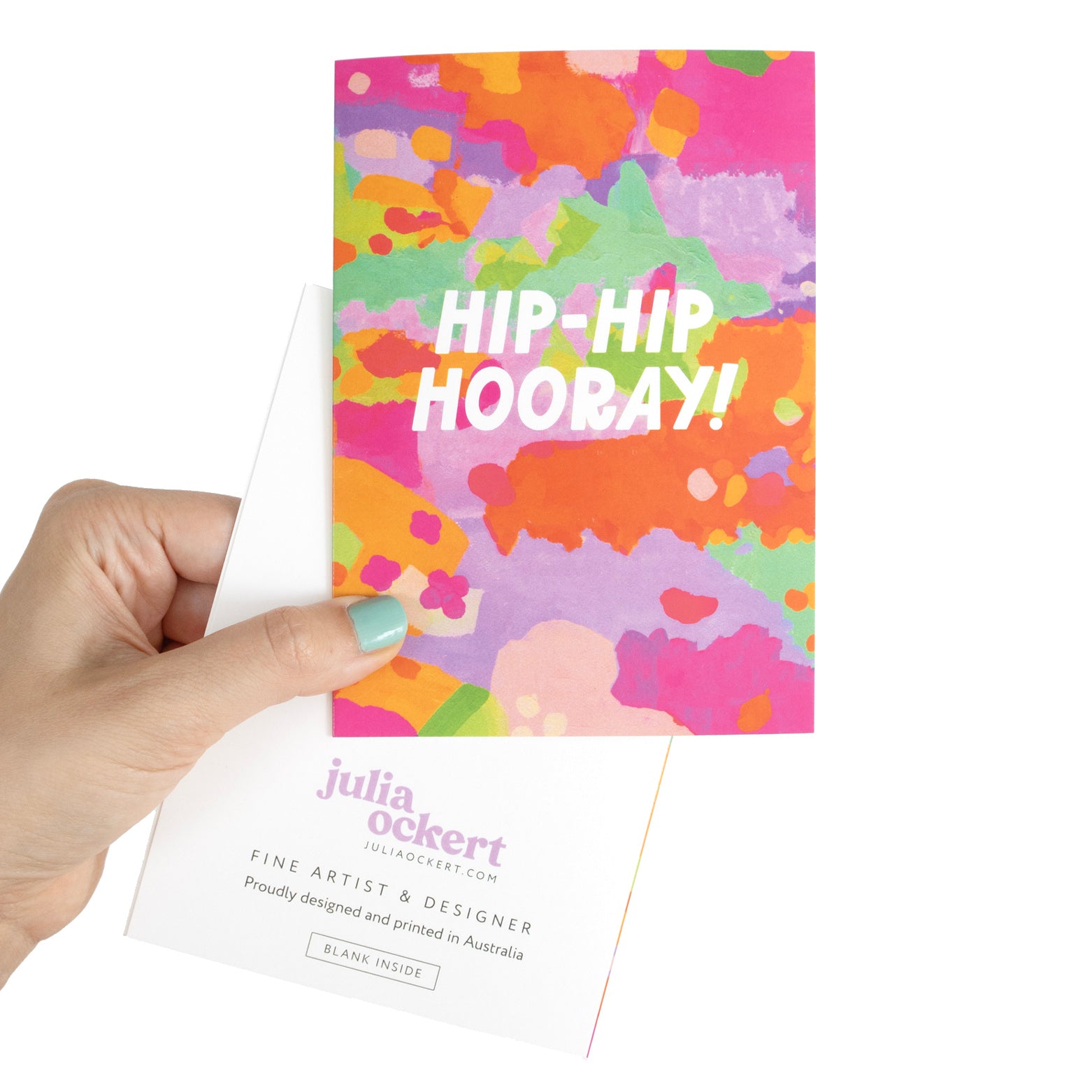 Hip-Hip Hooray! This vibrant card is perfect for celebrating any occasion - Birthdays, Engagements, Graduations, Anniversaries, Retirements! You name it. This artwork was painted and designed by me and printed in Australia.