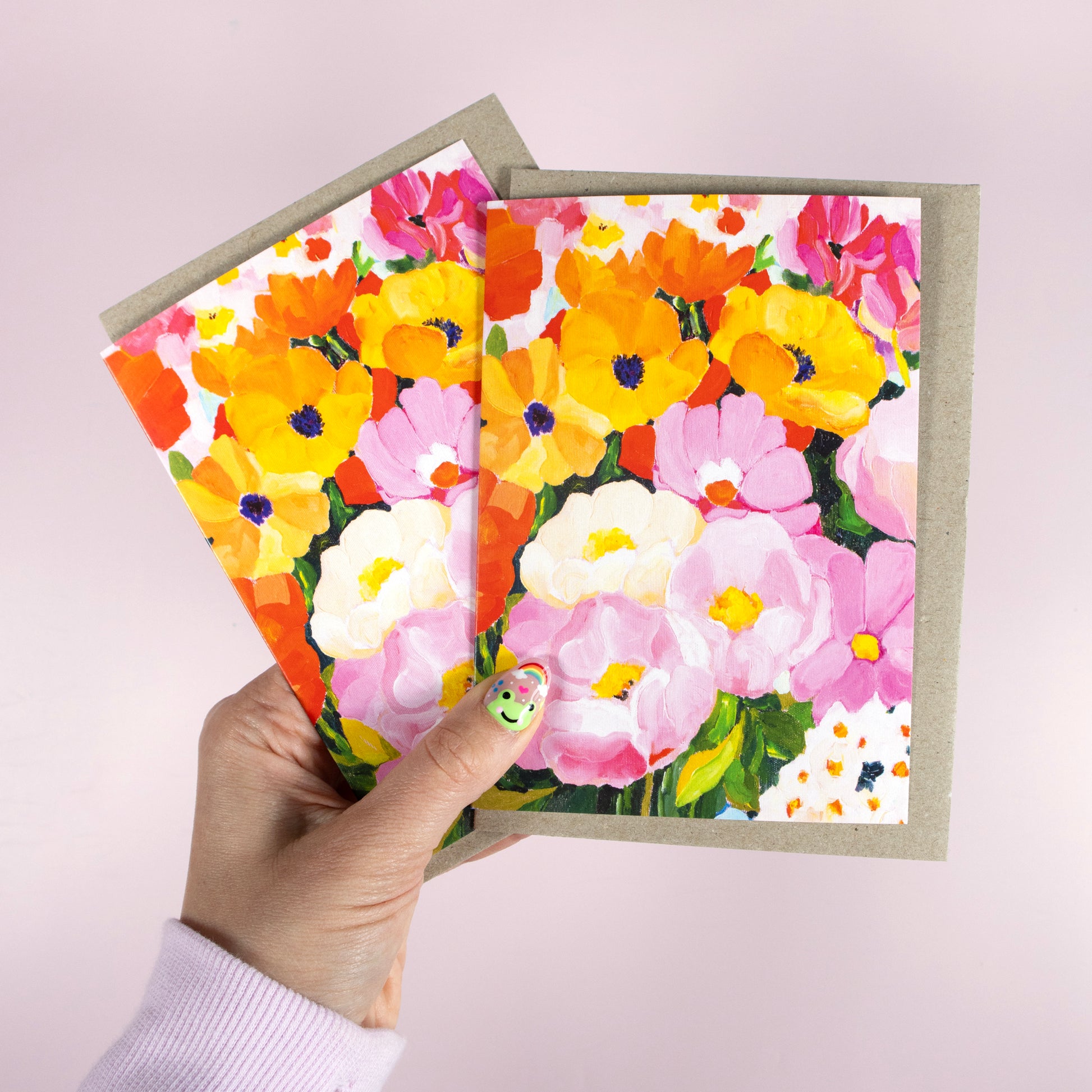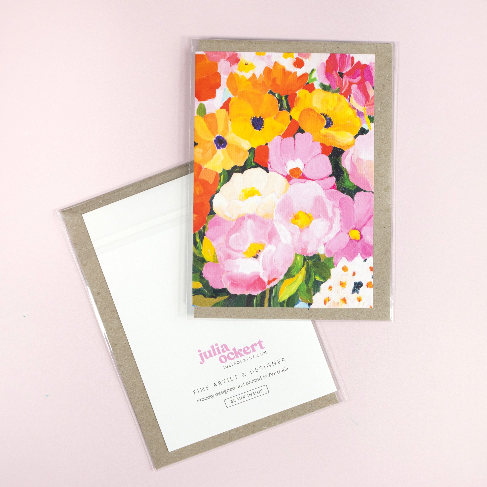 This vibrant, floral card is perfect for celebrating any occasion - Birthdays, Engagements, Graduations, Anniversaries, Retirements! This "Market Flowers" artwork was painted and designed by me and printed in Australia.