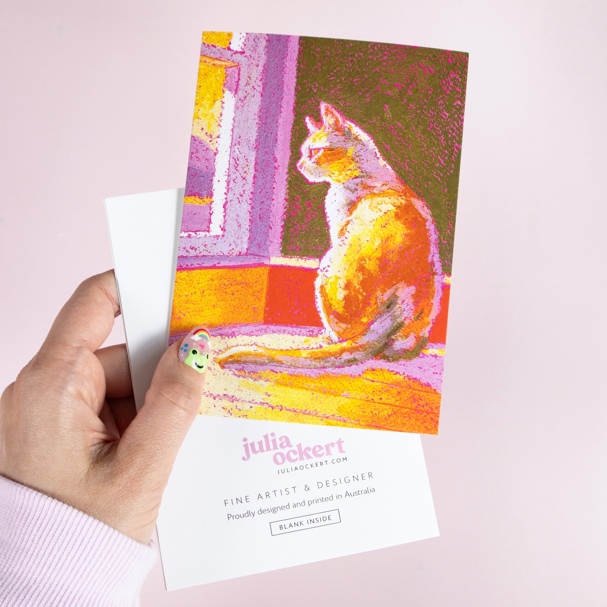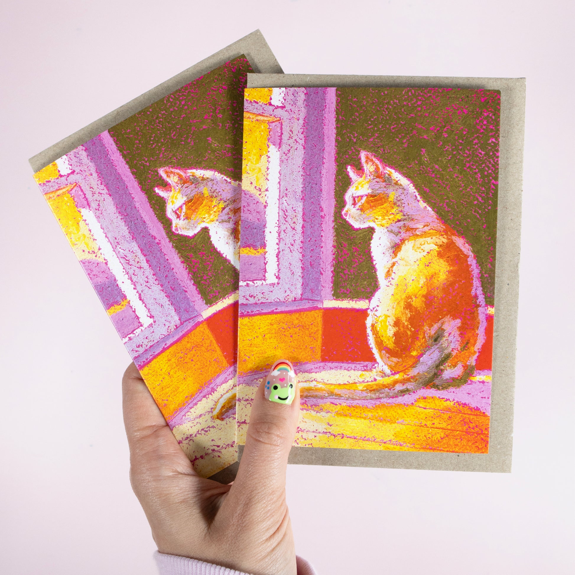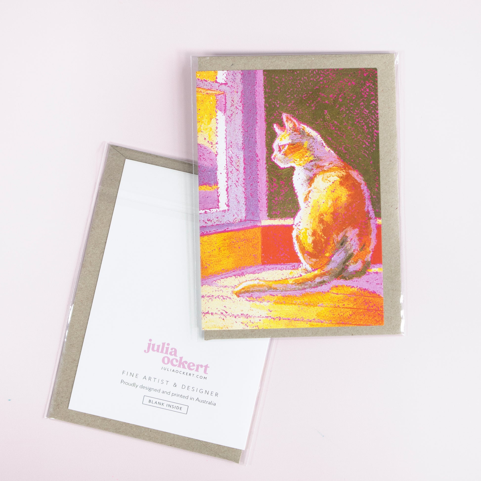 This Sun Cat (lilac version) card is for sending warmth and comfort to others. Perfect as a (pet) sympathy card or a Just Because / Thinking of you card.